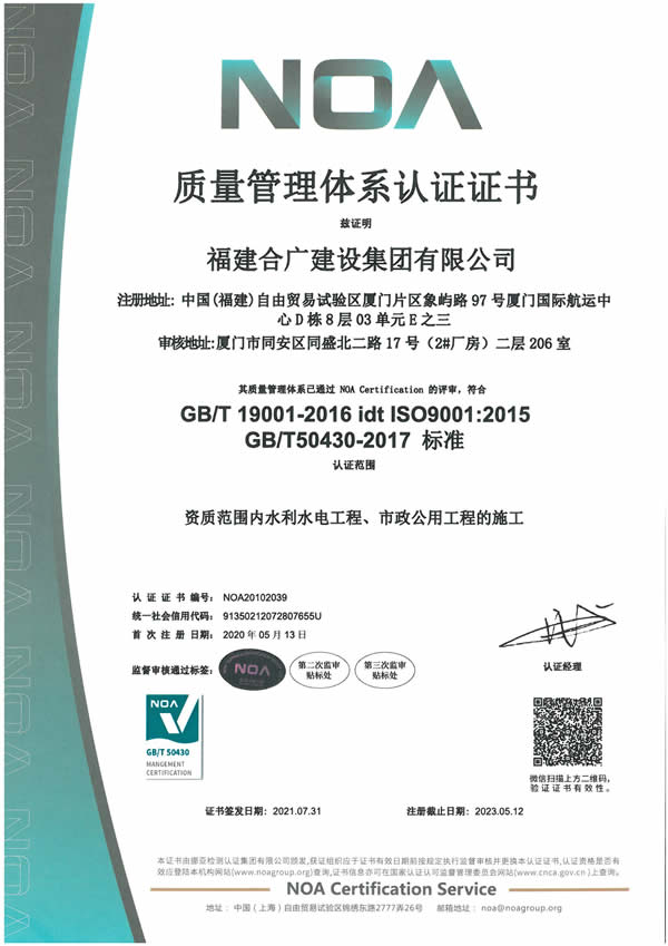 福建合廣建設集團有限公司,注冊資本5188萬元人民幣,公司位于廈門市同安區鳳山一里151-17號。本公司成立于2013年,公司具備市政公用工程、水利水電工程、房屋建筑工程、公路工程、園林綠化等多專業施工資質。企業從業人員100多人,各類專業技術人員70多人,其中高級職稱8人,中級職稱40多人,一級建造師6人,二級建造師15多人。